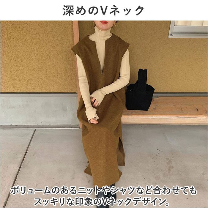 ・ボリュームのあるニットやシャツなど合わせてもスッキリな印象のVネックデザイン。