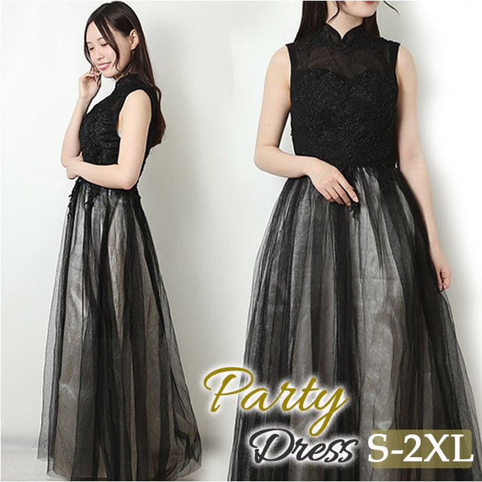 パーティードレス 結婚式 通販 ロングドレス エレガント ドレスワンピース ワンピース ドレス ピアノ 発表会 演奏会 きれいめ フォーマル ノースリーブ スタンドカラー 詰襟 レース 刺繍 上品 かわいい ウェディング 二次会 披露宴 ブライズメイド 卒業式