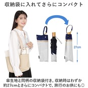 ・傘生地と同柄の収納袋付き。収納時はわずか約27cmとさらにコンパクトで、旅行のお供にも◎