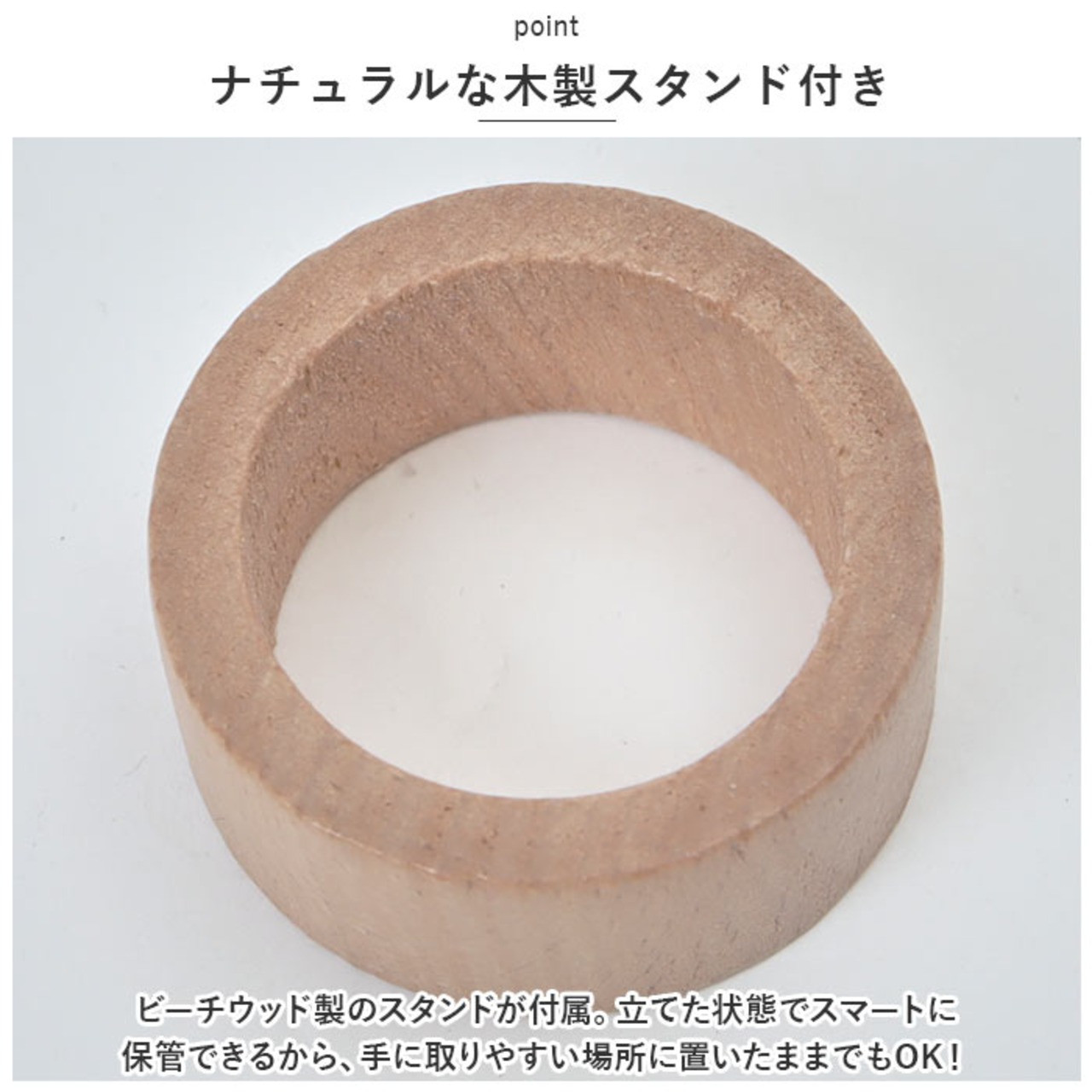 ・ビーチウッド製のスタンドが付属。立てた状態でスマートに保管できるから、手に取りやすい場所に置いたままでもOK!