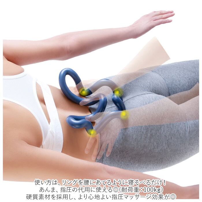 ・使い方は、リングを腰にあてるように寝そべるだけ!あんま、指圧の代用に使える◎(耐荷重:100kg)