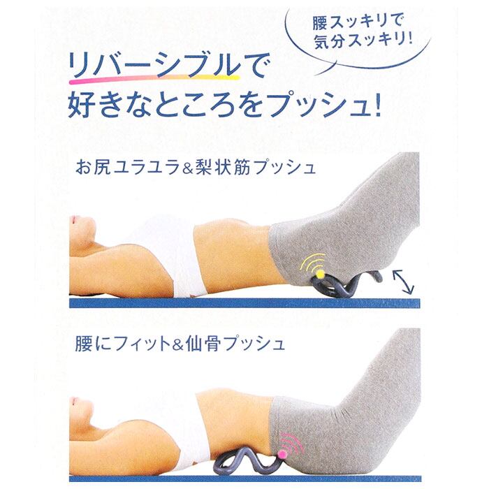 ・くるっとひっくり返し、リバーシブルでお好きなところをプッシュ!「お尻ユラユラ&梨状筋プッシュ」・「腰にフィット&仙骨プッシュ」