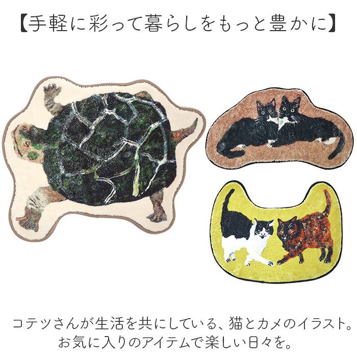 ・コテツさんが生活を共にしている、猫とカメのイラスト。お気に入りのアイテムで楽しい日々を。