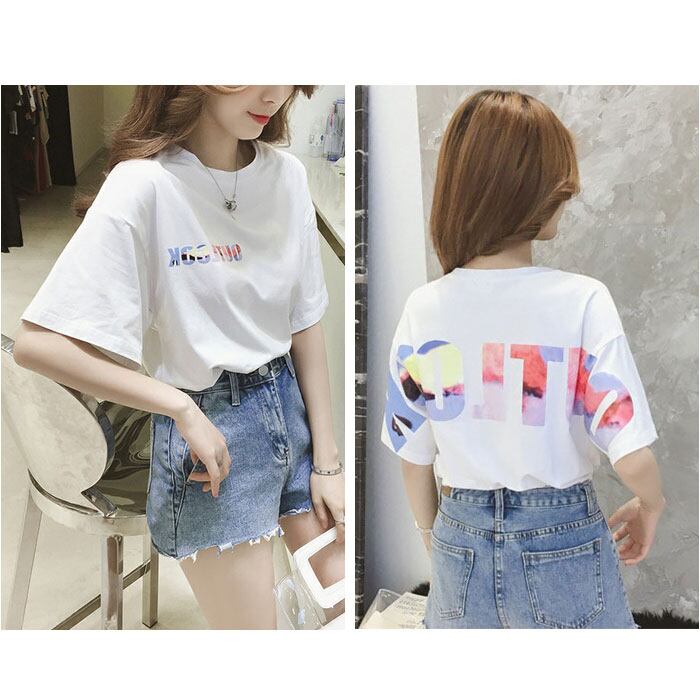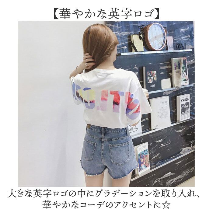・大きな英字ロゴの中にグラデーションを取り入れ、華やかなコーデのアクセントに☆