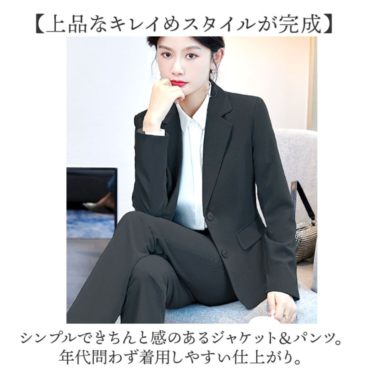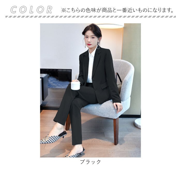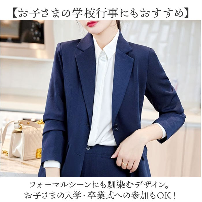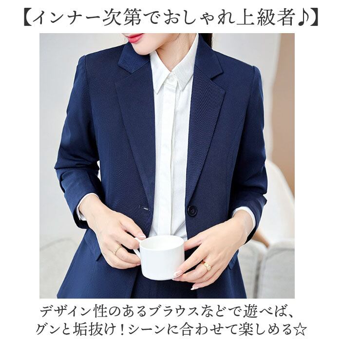 ・シンプルできちんと感のあるジャケット&パンツ。年代問わず着用しやすい仕上がり。