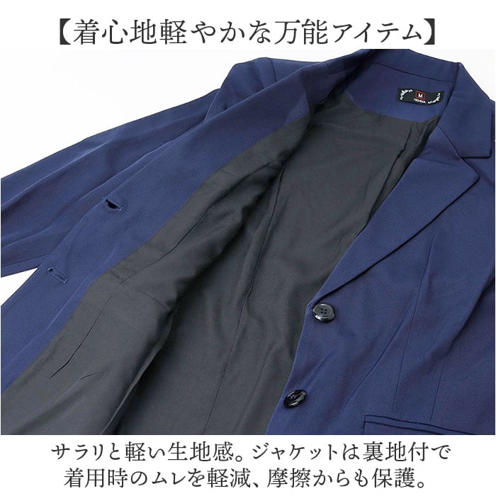 ・サラリと軽い生地感。ジャケットは裏地付で着用時のムレを軽減、摩擦からも保護。