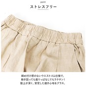 ・締め付け感のないウエストゴム仕様で、動き回っても座りっぱなしでもラクチン!股上が深く、安定した履き心地をプラス。