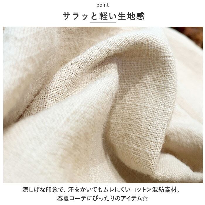 ・涼しげな印象で、汗をかいてもムレにくいコットン混紡素材。春夏コーデにぴったりのアイテム☆