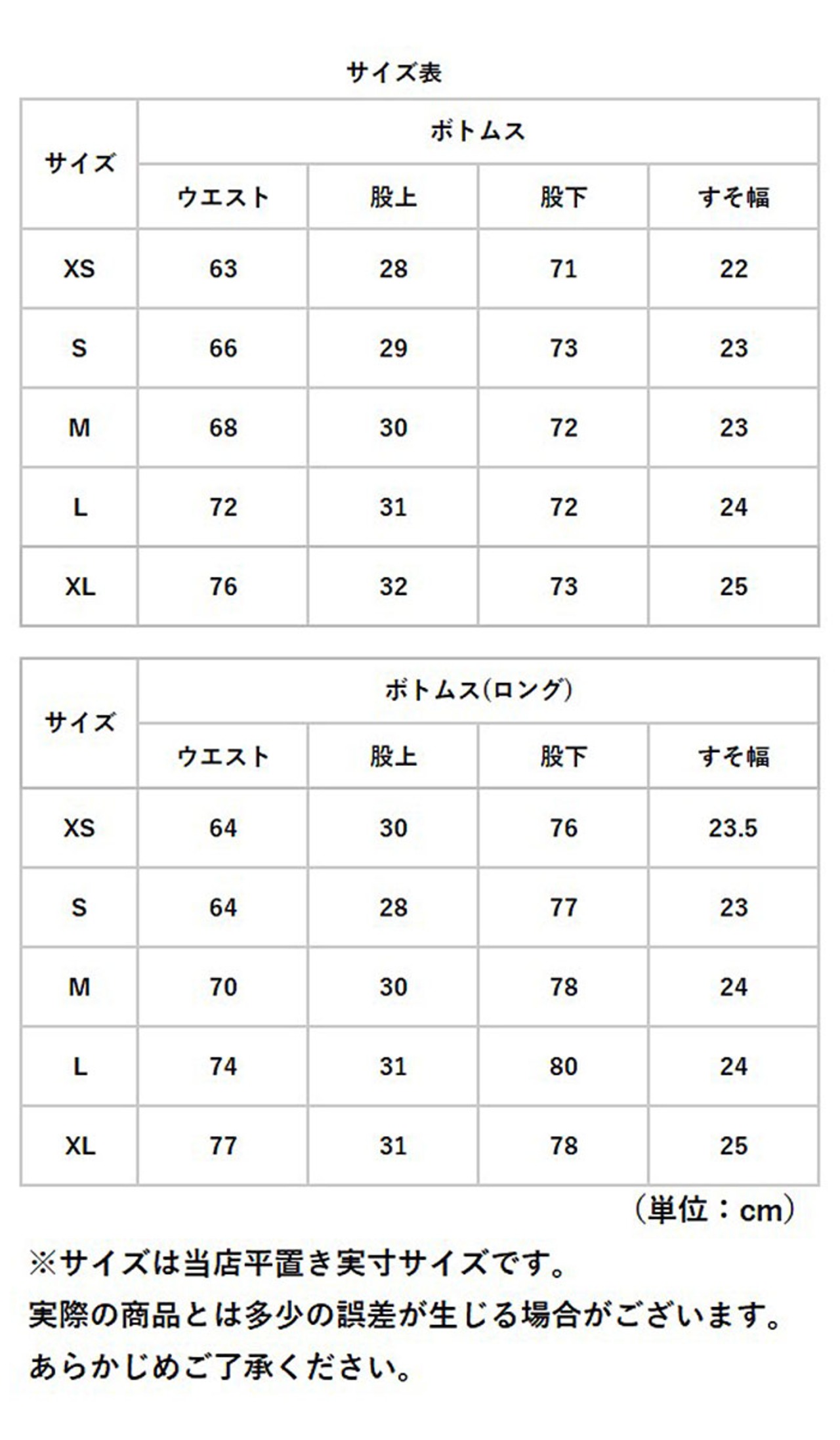 ※こちらの商品はサイズによって股下などの長さなどが異なっています。