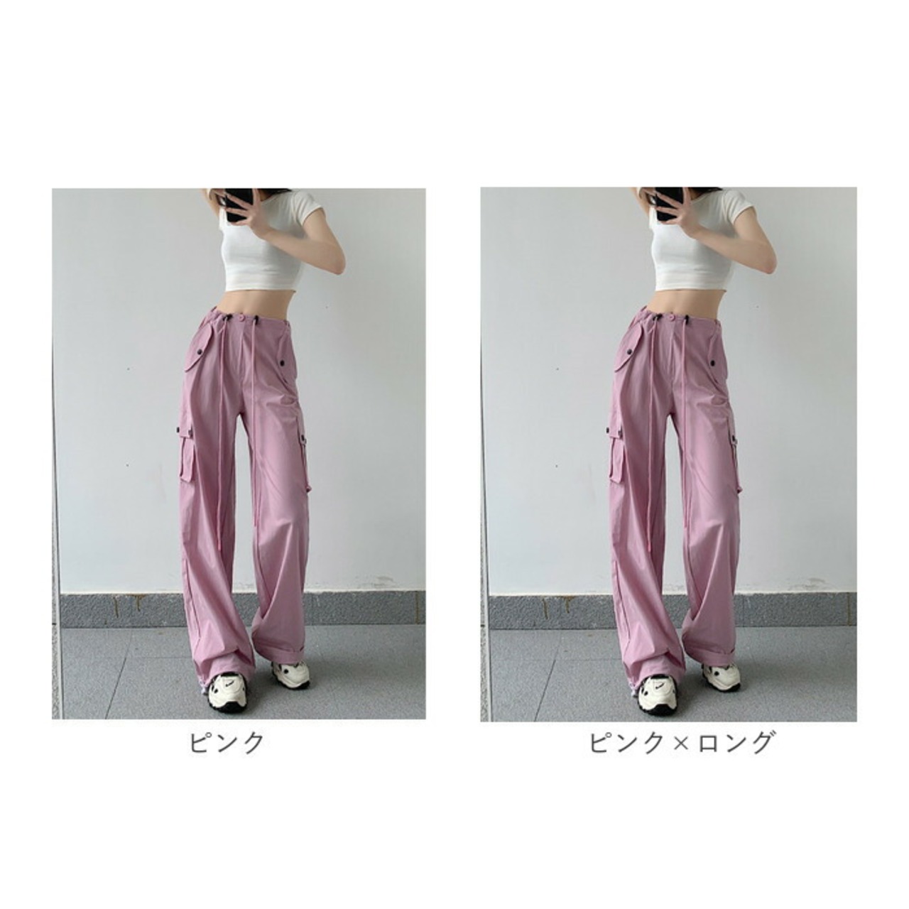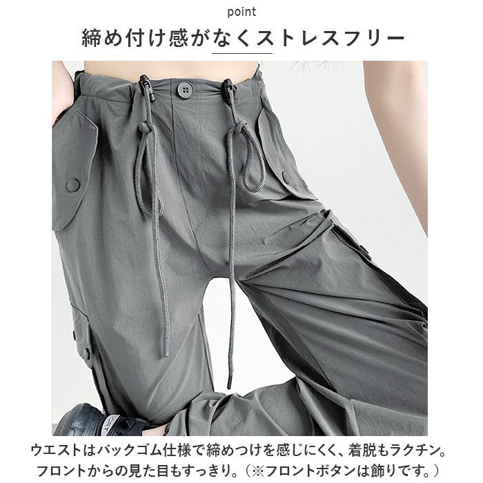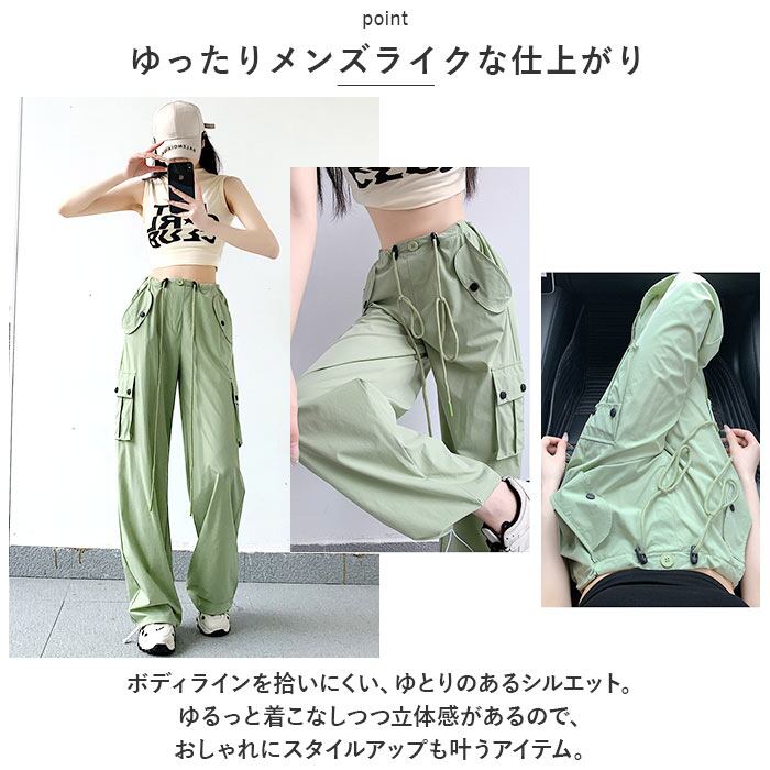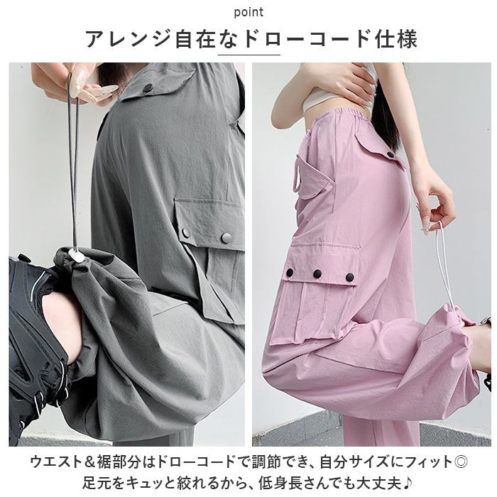 ・ウエスト&裾部分はドローコードで調節でき、自分サイズにフィット◎足元をキュッと絞れるから、低身長さんでも大丈夫♪