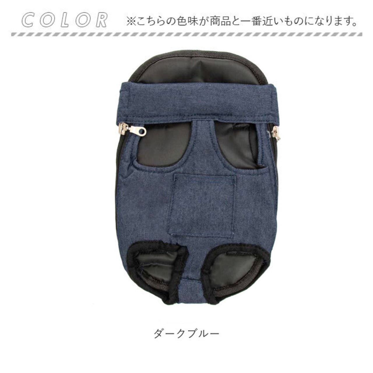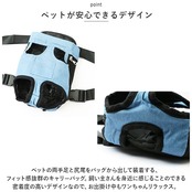 ・お出掛けの用ペットウェアに合わせてコーディネートできるお洒落なデニムカラー。飼い主さんの両手がフリーになるので、自転車での移動や、手荷物があるとき、ペットを動物病院へ連れて行く時にも大活躍。