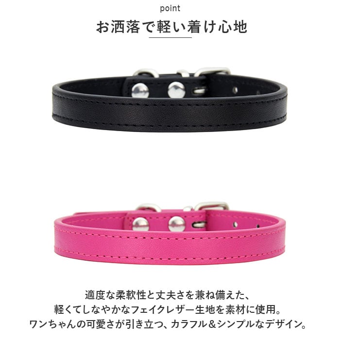 ・適度な柔軟性と丈夫さを兼ね備えた、軽くてしなやかなフェイクレザー生地を素材に使用。ワンちゃんの可愛さが引き立つ、カラフル&シンプルなデザイン。