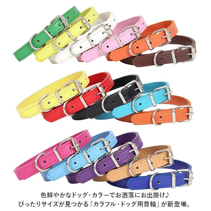 ・色鮮やかなドッグ・カラーでお洒落にお出掛け♪ぴったりサイズが見つかる「カラフル・ドッグ用首輪」が新登場。
