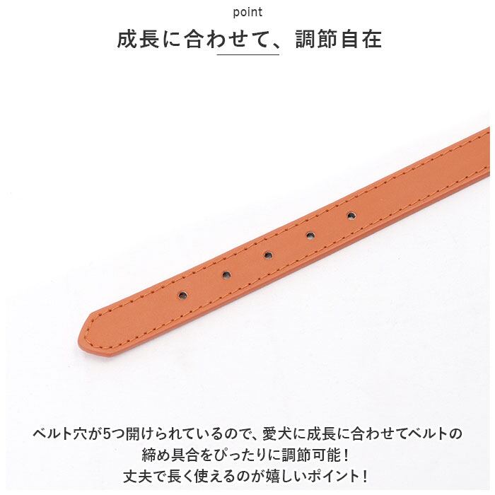 ・ベルト穴が5つ開けられているので、愛犬に成長に合わせてベルトの締め具合をぴったりに調節可能!丈夫で長く使えるのが嬉しいポイント!