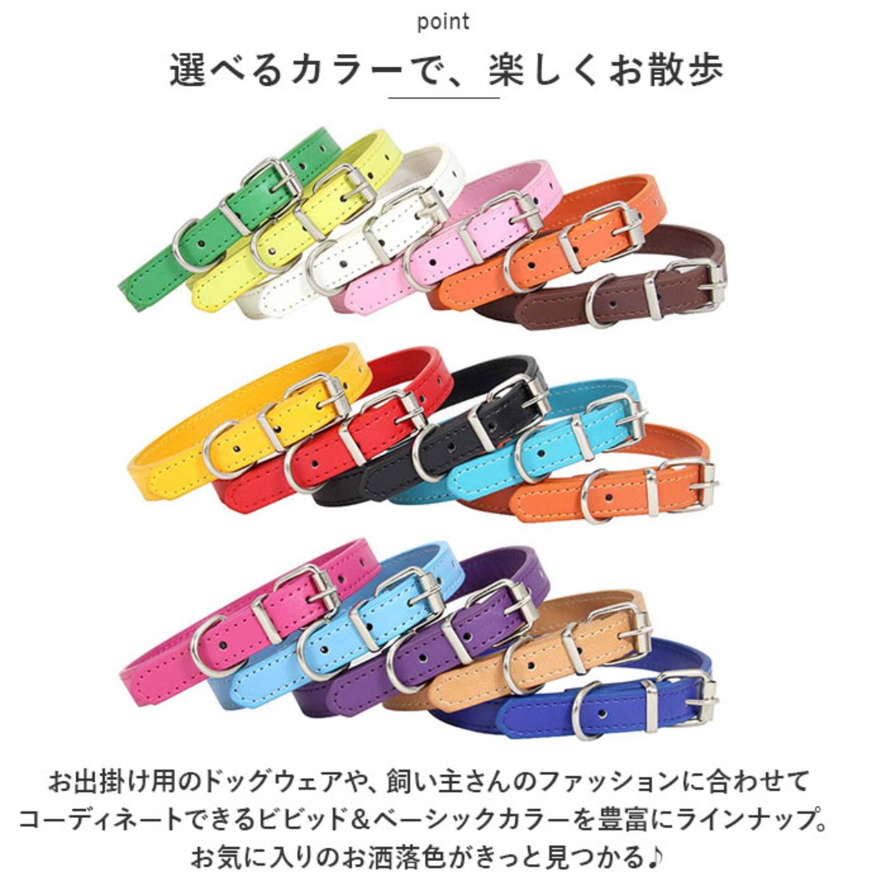 ・色鮮やかなドッグ・カラーでお洒落にお出掛け♪身体の大きなワンちゃんでも着けられる「カラフル・ドッグ用首輪」が新登場。