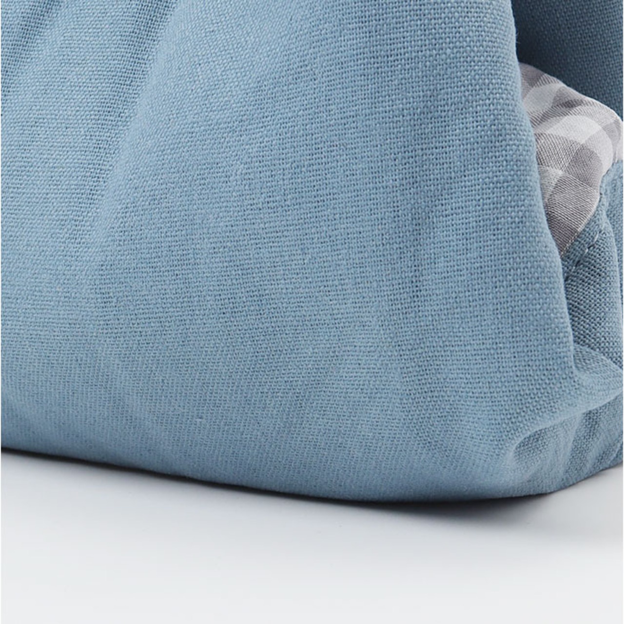 ・本体は温かみのあるリネン混生地。広げた時にチラッと見える、ギンガムチェックがアクセント。