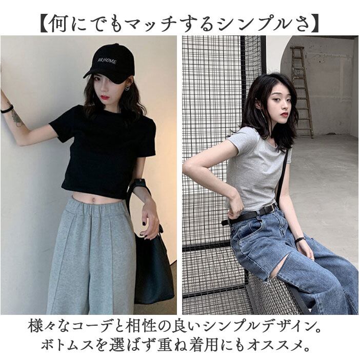 ショート丈トップス Tシャツ