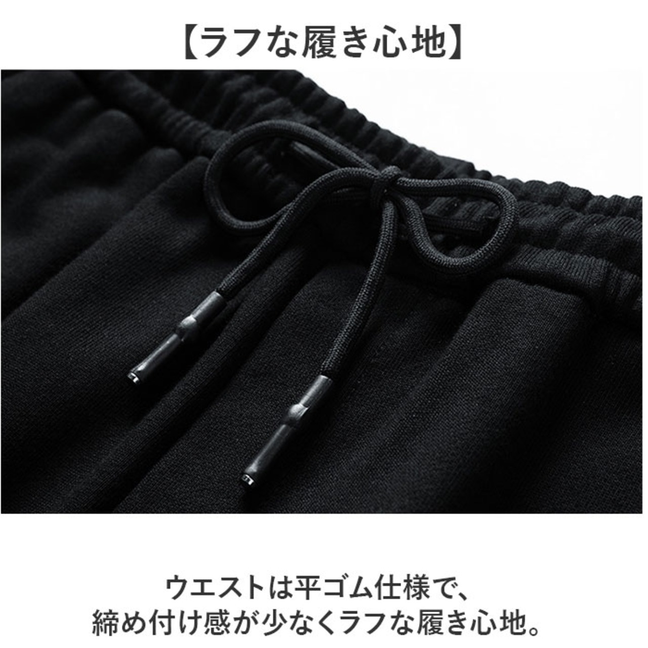 ・ウエストは平ゴム仕様で、締め付け感が少なくラフな履き心地。