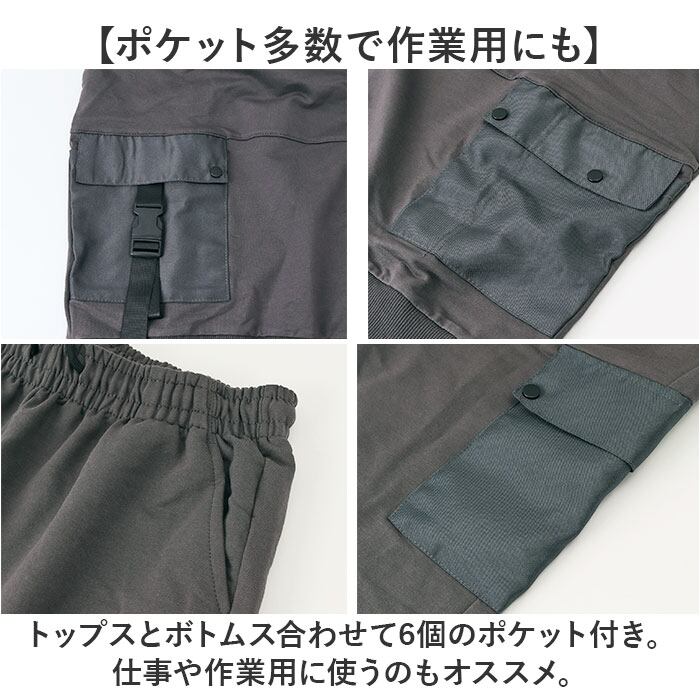 ・トップスとボトムス合わせて6個のポケット付き。仕事や作業用に使うのもオススメ。