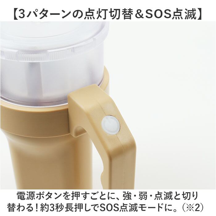 ・電源ボタンを押すごとに、強・弱・点滅と切り替わる!約3秒長押しでSOS点滅モードに。