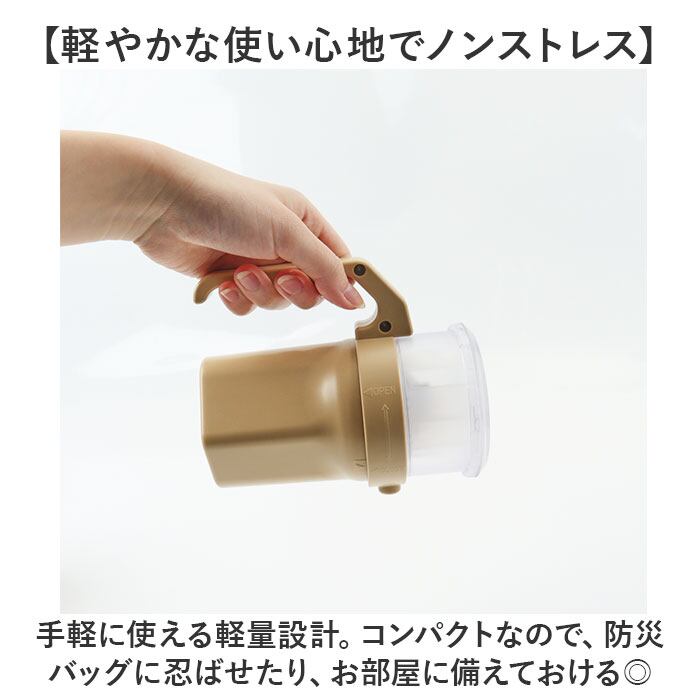 ・手軽に使える軽量設計。コンパクトなので、防災バッグに忍ばせたり、お部屋に備えておける◎