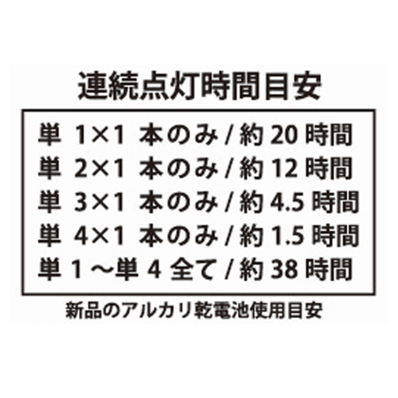 (※1)同じサイズの電池を複数本入れて使用することはできません。電池のサイズにより、連続点灯時間の目安は変わります。