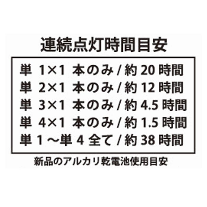 ・単1電池、単2電池、単3電池、単4電池…いずれか1本でもライトON!複数本で長く点灯。