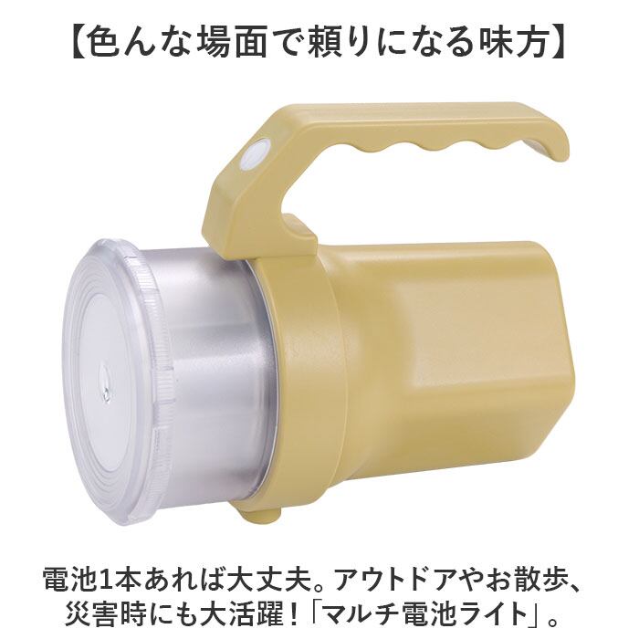 ・電池1本あれば大丈夫。アウトドアやお散歩、災害時にも大活躍!「マルチ電池ライト」。