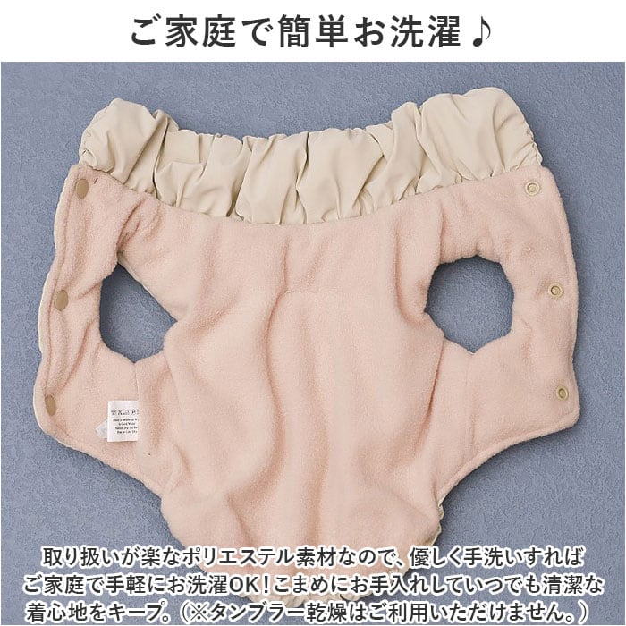 ・ワンちゃんがおトイレする時にもたつかない♪お腹周りやお尻が大きく開いたゆったりデザイン。