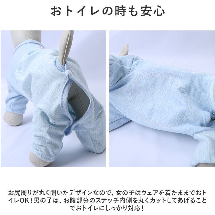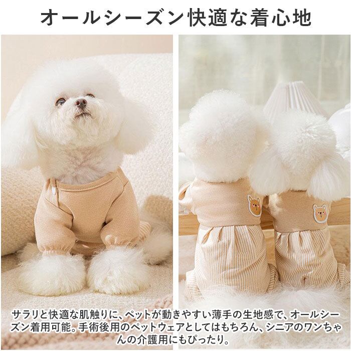 ・サラリと快適な肌触りに、ペットが動きやすい薄手の生地感で、オールシーズン着用可能。手術後用のペットウェアとしてはもちろん、シニアのワンちゃんの介護用にもぴったり。