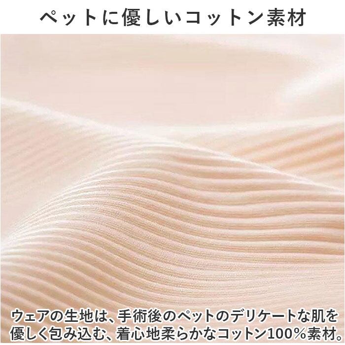 ・ウェアの生地は、手術後のペットのデリケートな肌を優しく包み込む、着心地柔らかなコットン100%素材。