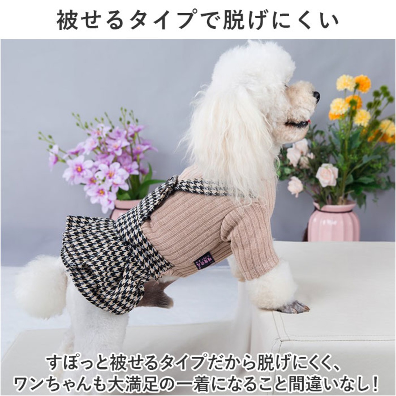 ・すぽっと被せるタイプだから脱げにくく、ワンちゃんも大満足の一着になること間違いなし!