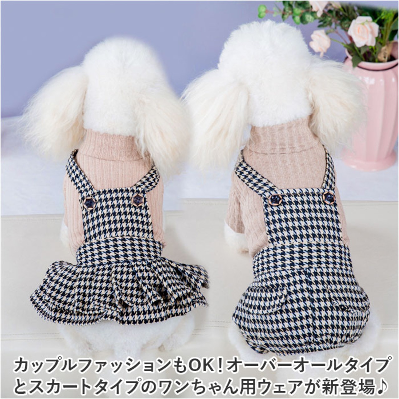 ・カップルファッションもOK!オーバーオールタイプとスカートタイプのワンちゃん用ウェアが新登場♪