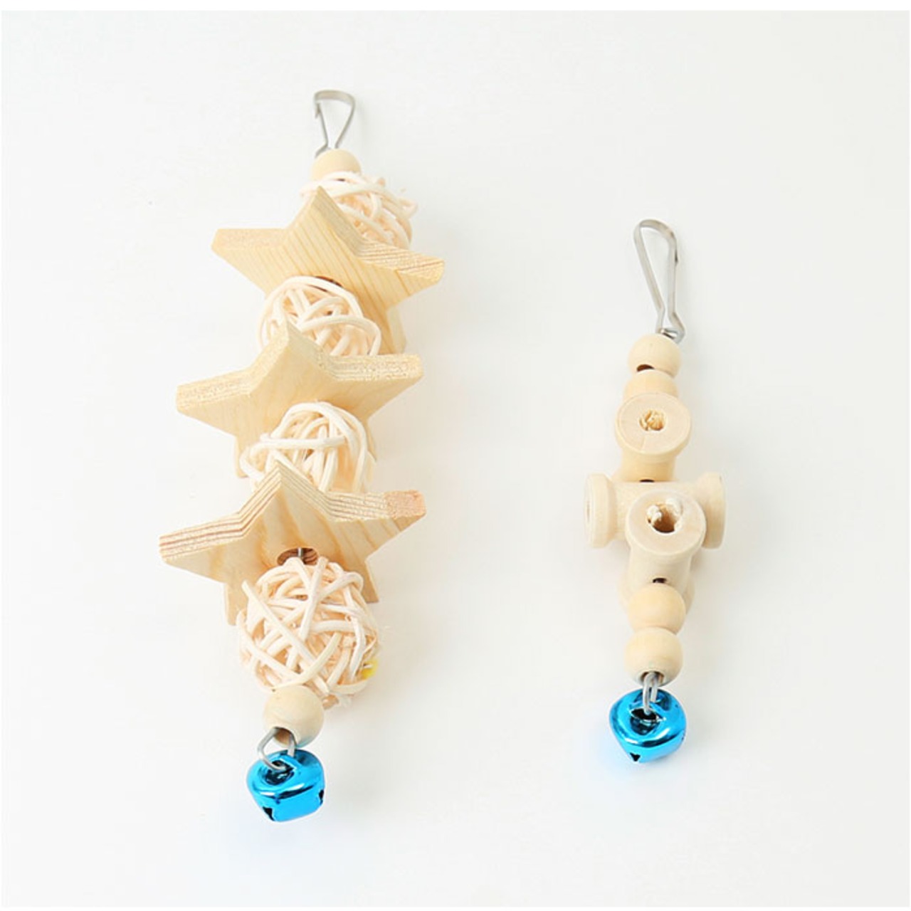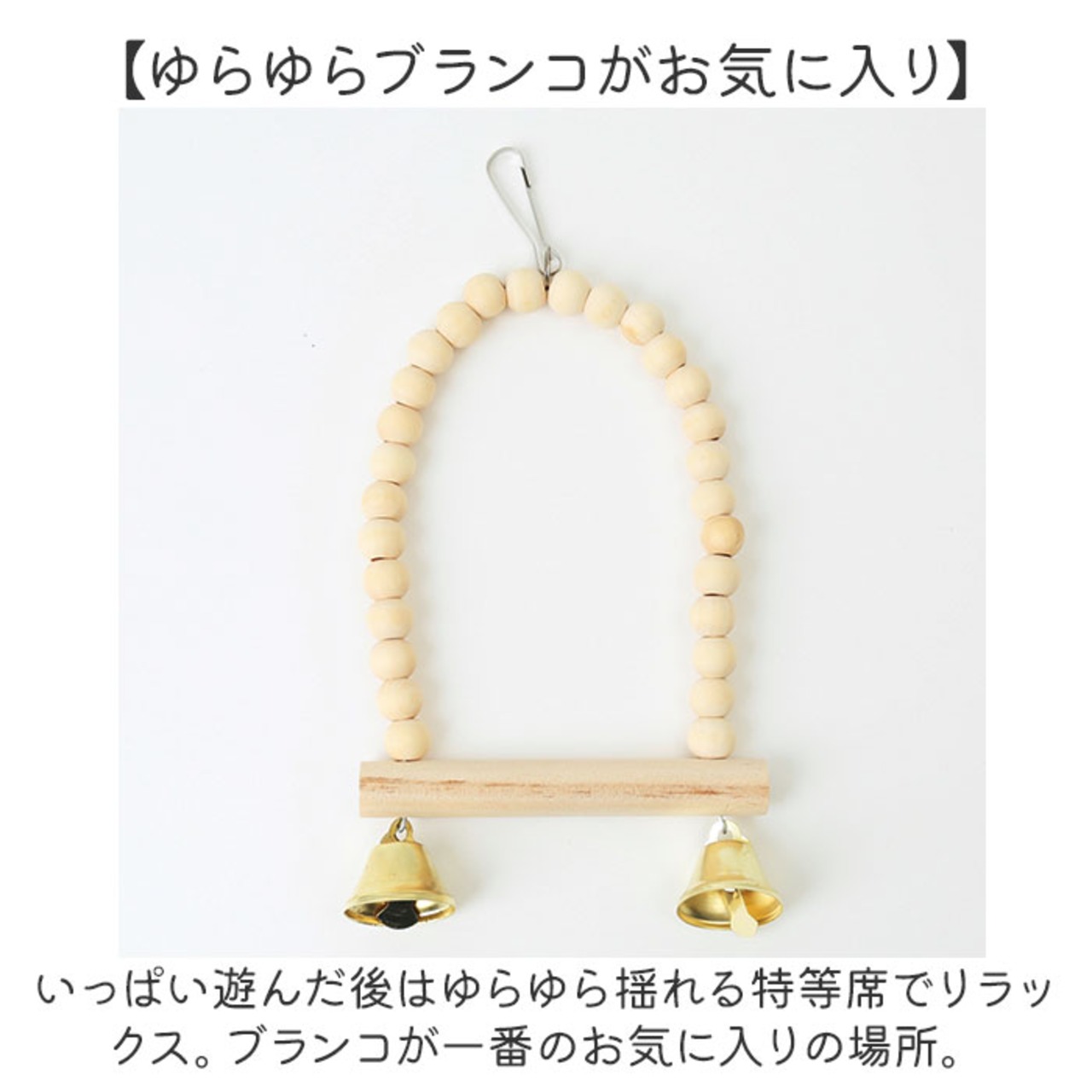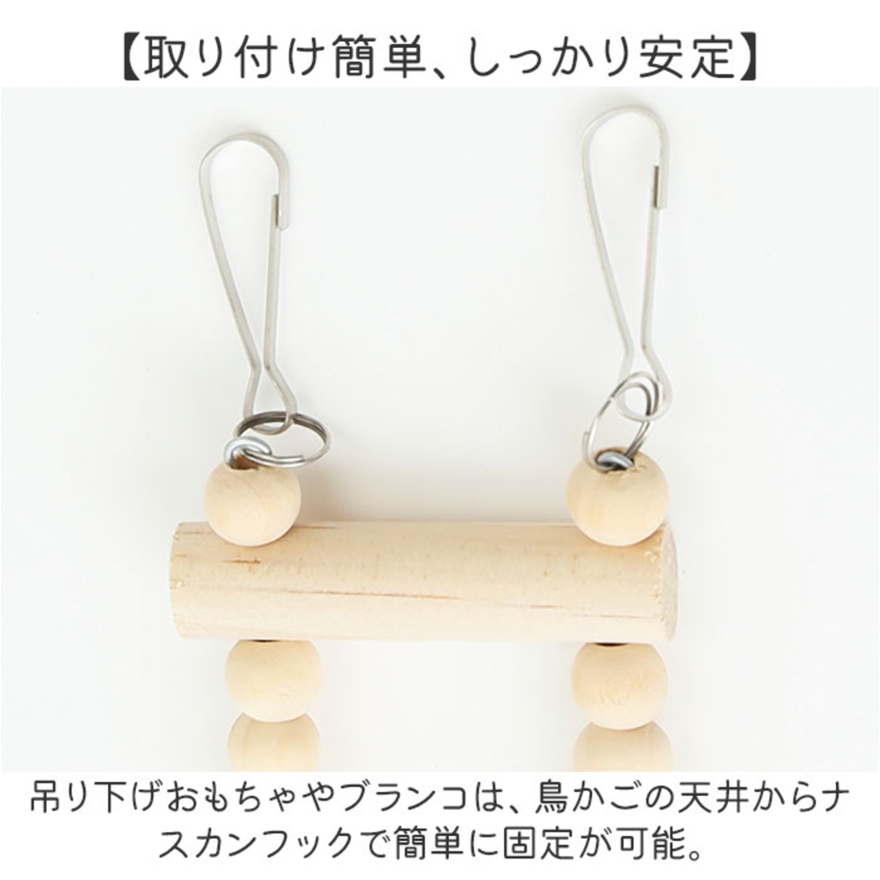 ・吊り下げおもちゃやブランコは、鳥かごの天井からナスカンフックで簡単に固定が可能。