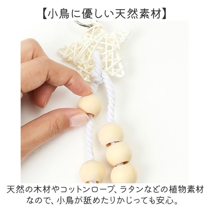 ・天然の木材やコットンロープ、ラタンなどの植物素材なので、小鳥が舐めたりかじっても安心。