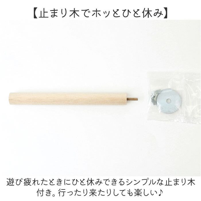 ・遊び疲れたときにひと休みできるシンプルな止まり木付き。行ったり来たりしても楽しい♪