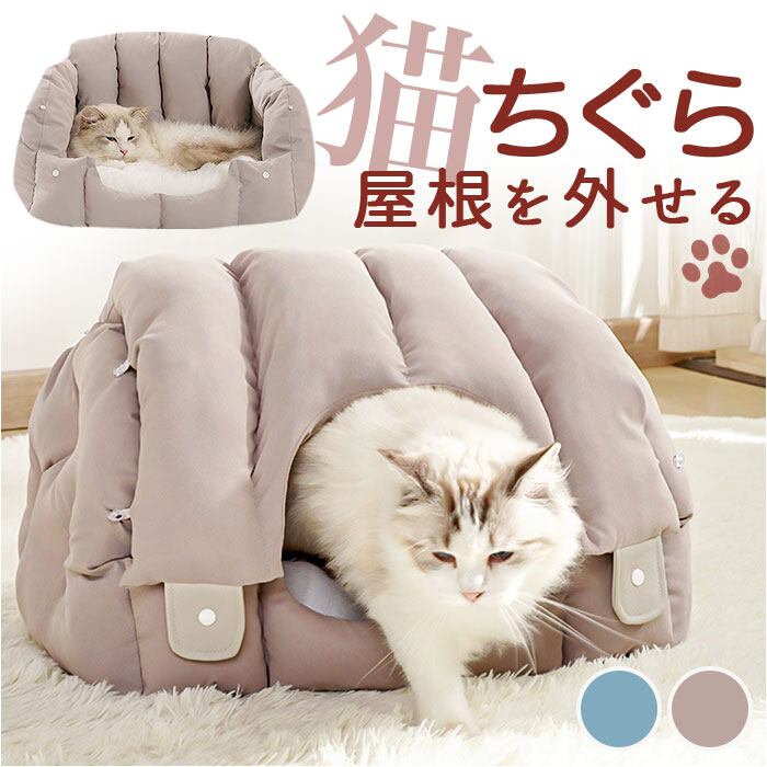 ・伝統的な猫ちゃんの寝床「猫ちぐら」をモチーフに造られた、かまぼこ型のコロンとしたフォルムが可愛らしい、ハウス型のペットベッド。