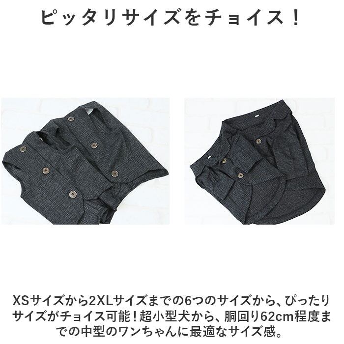 ・XSサイズから2XLサイズまでの6つのサイズから、ぴったりサイズがチョイス可能!超小型犬から、胴回り62cm程度までの中型のワンちゃんに最適なサイズ感。