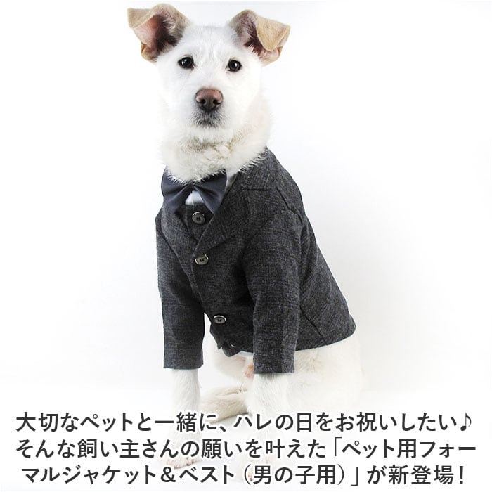 ・大切なペットと一緒に、ハレの日をお祝いしたい♪そんな飼い主さんの願いを叶えた「ペット用フォーマルジャケット&ベスト(男の子用)」が新登場!