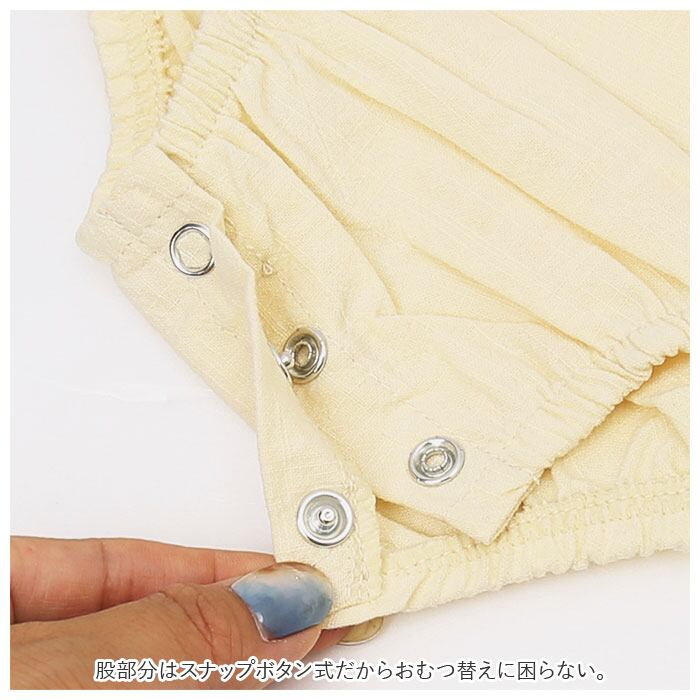 ・股部分はスナップボタン式だからおむつ替えに困らない。