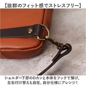 ・ショルダー下部のDカンと本体をフックで繋げ、左右付け替えも自在。自分仕様にアレンジ!