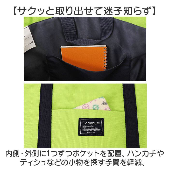 ・内側・外側に1つずつポケットを配置。ハンカチやティシュなどの小物を探す手間を軽減。