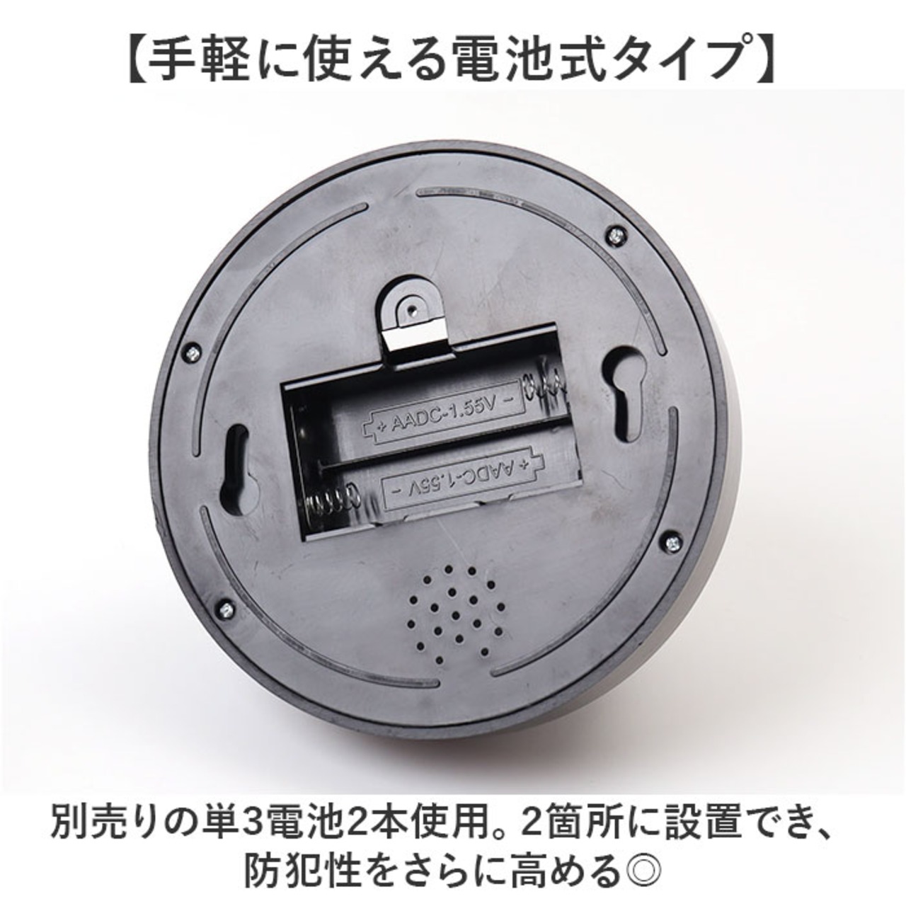 ・別売りの単3電池2本使用。2箇所に設置でき、防犯性をさらに高める◎