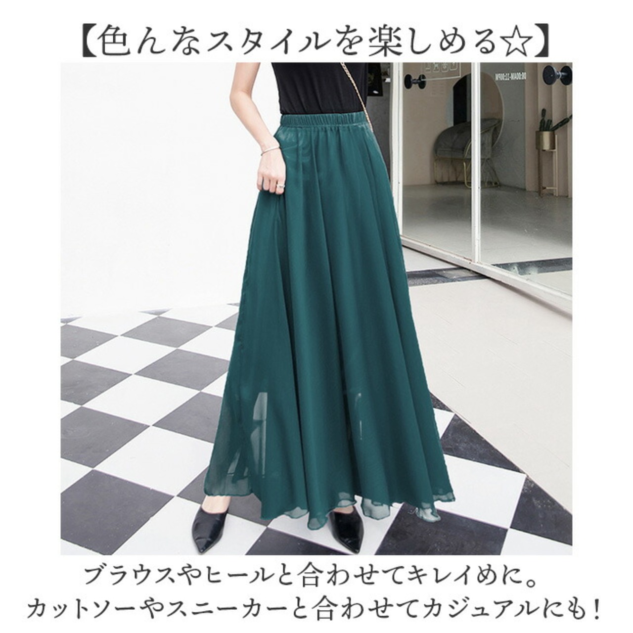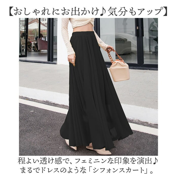 ・柔らかなシフォン生地が、歩くたびにひらり。女性らしさが際立つデザイン♪
