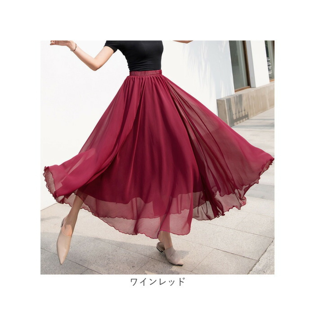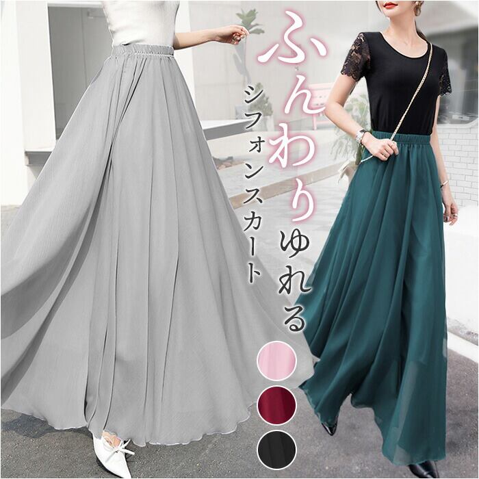 シフォンスカート ロング ウエストゴム