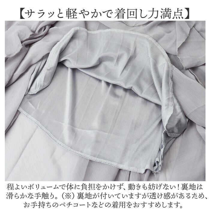 (※)裏地が付いていますが透け感があるため、お手持ちのペチコートなどの着用をおすすめします。