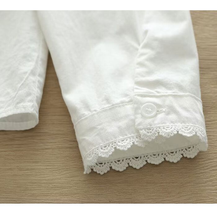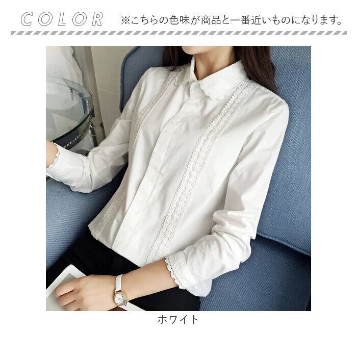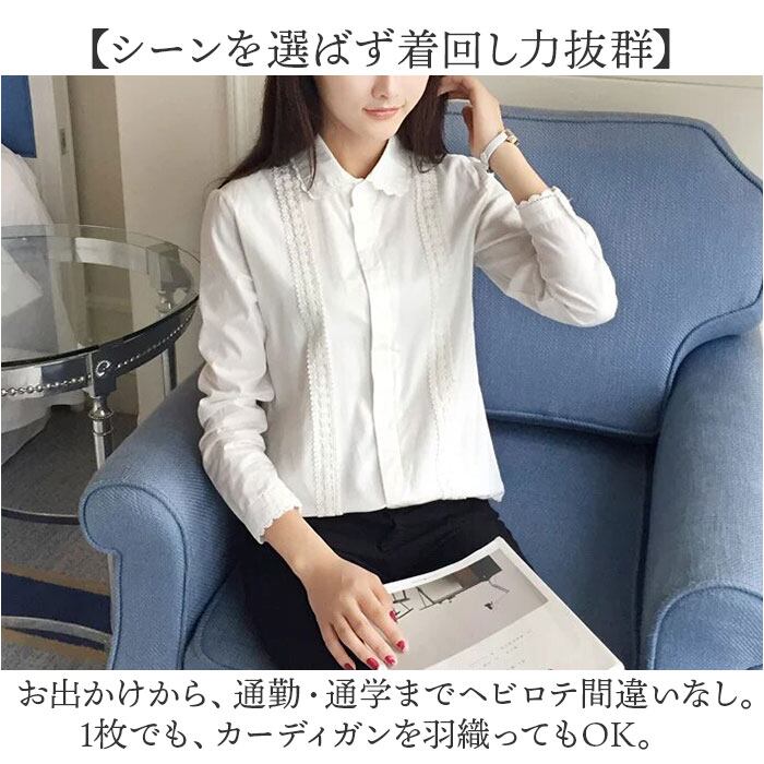 ・ホワイトカラーに繊細な刺繍レースがアクセント♪ナチュラルな、レディース用ブラウス。