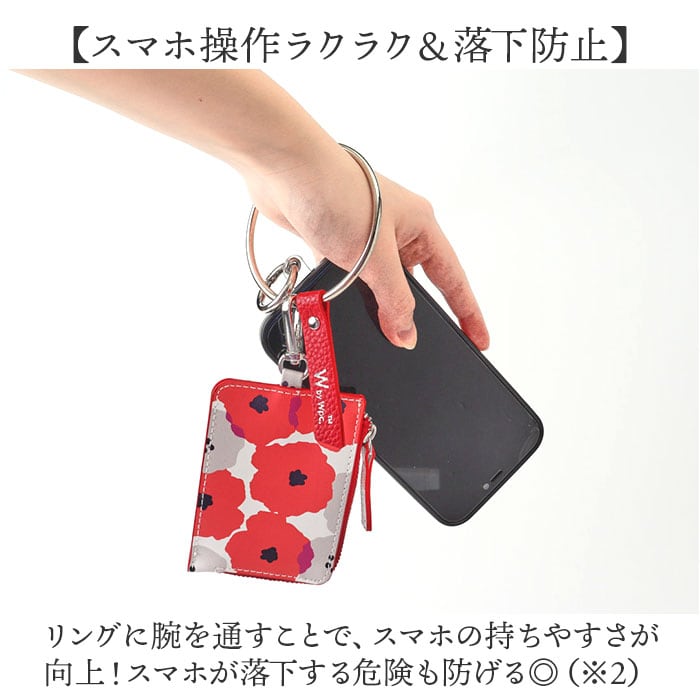 ・リングに腕を通すことで、スマホの持ちやすさが向上!スマホが落下する危険も防げる◎