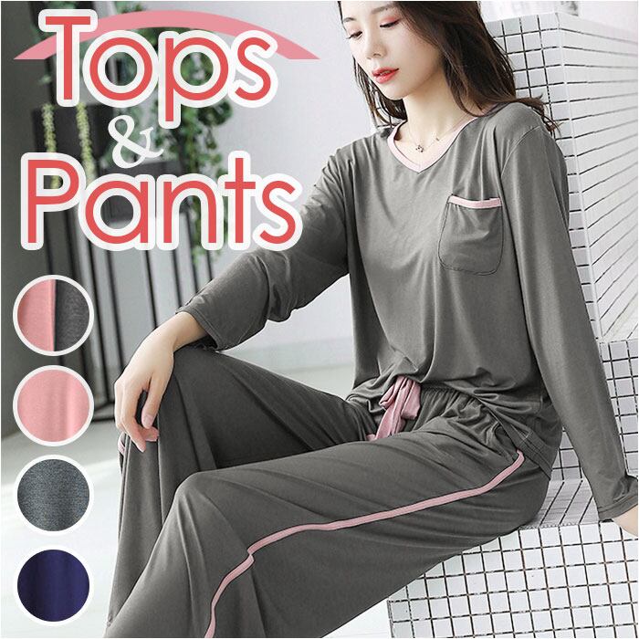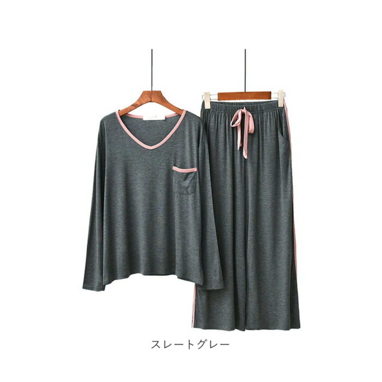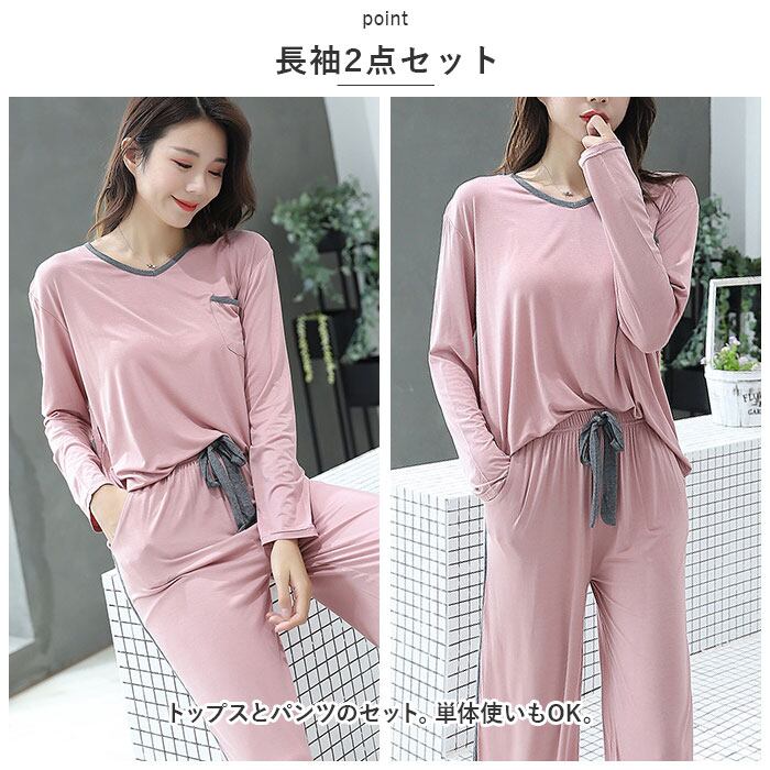 ルームウェア 上下セット 通販 パジャマ 部屋着 ナイトウェア 寝間着 寝巻き 長袖 ゆったり セットアップ ズボン リラックス かわいい カワイイ 可愛い やわらかい 柔らかい 旅行 秋冬 カジュアル シンプル