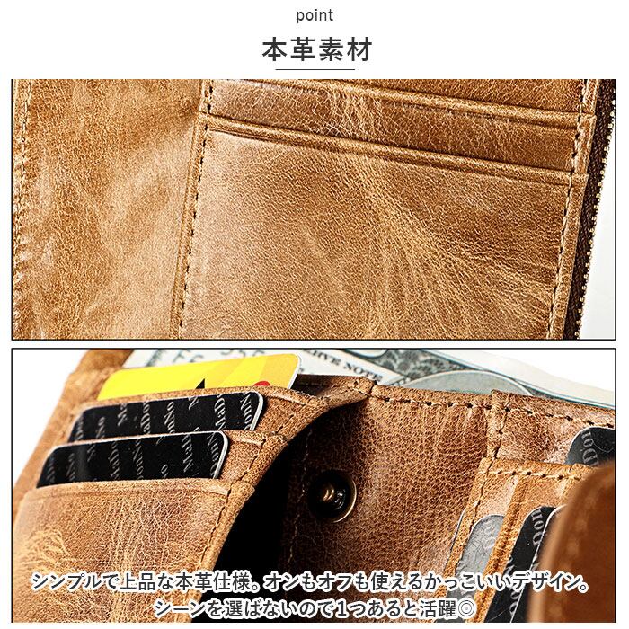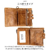 ・コンパクトな二つ折りタイプ。カードもお札もしっかり収納でき、すっきりカバンに収まる。使い勝手のよさが魅力のアイテム。